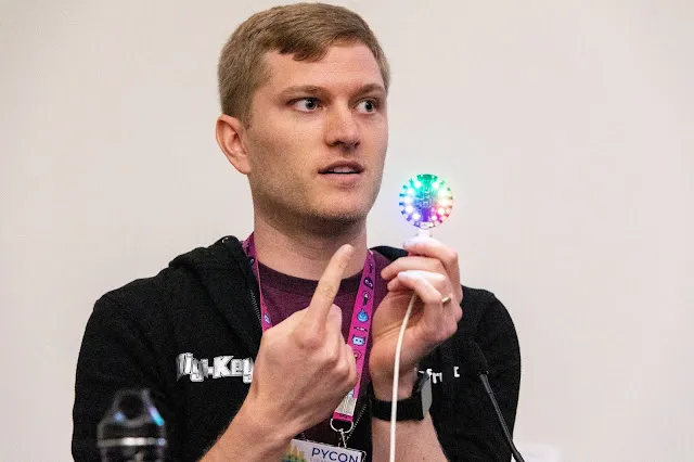Scott Shawcroft is a freelance software engineer working full time for Adafruit, an open source hardware company that manufactures electronics that are easy to assemble and program. Shawcroft leads development of CircuitPython, a Python interpreter for small devices. The presentation began with a demo of Adafruit’s Circuit Playground Express, a two-inch-wide circular board with a microcontroller, ten RGB lights, a USB port, and other components. Shawcroft connected the board to his laptop with a USB cable and it appeared as a regular USB drive with a source file called code.py. He edited the source file on his laptop to dim the brightness of the board’s lights. When he saved the file, the board automatically reloaded the code and the lights dimmed. “So that’s super quick,” said Shawcroft. “I just did the demo in three minutes.” Read more 2019 Python Language Summit coverage.