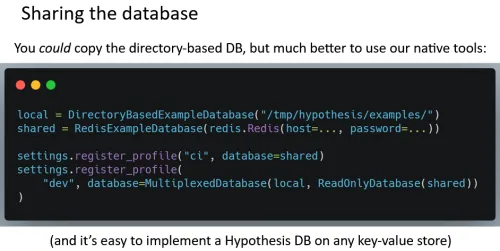 The Hypothesis database is a collection of files on disk that represent the various examples. Since it’s a key-value store, it’s easy to implement your own custom one: